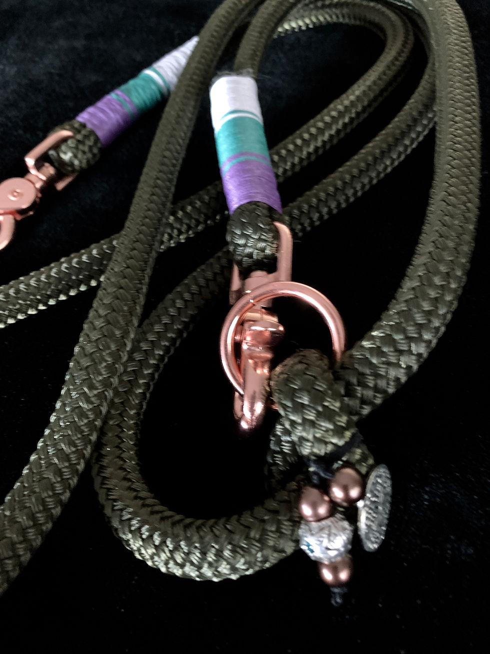 Dog Lead, Olive, Purple/LightBlue/White, Rosegold